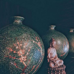 – Chế tác thủ công từ bột đá và composite – tượng được làm màu, và thếp vàng 24K.